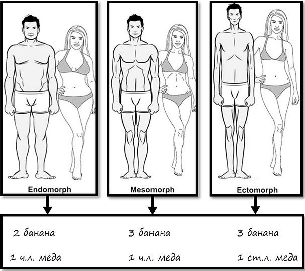 Были проведены некоторые исследования относительно того, какой из быстрых углеводов является самым эффективным после тренировки. Для всех трех типов телосложения они включали: